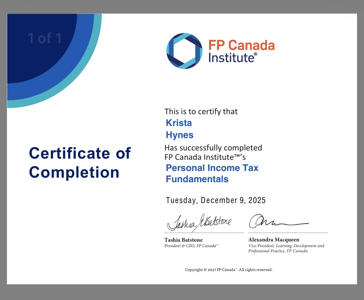 🎉 Big news! Krista has officially completed her Personal Income Tax Fundamentals course.