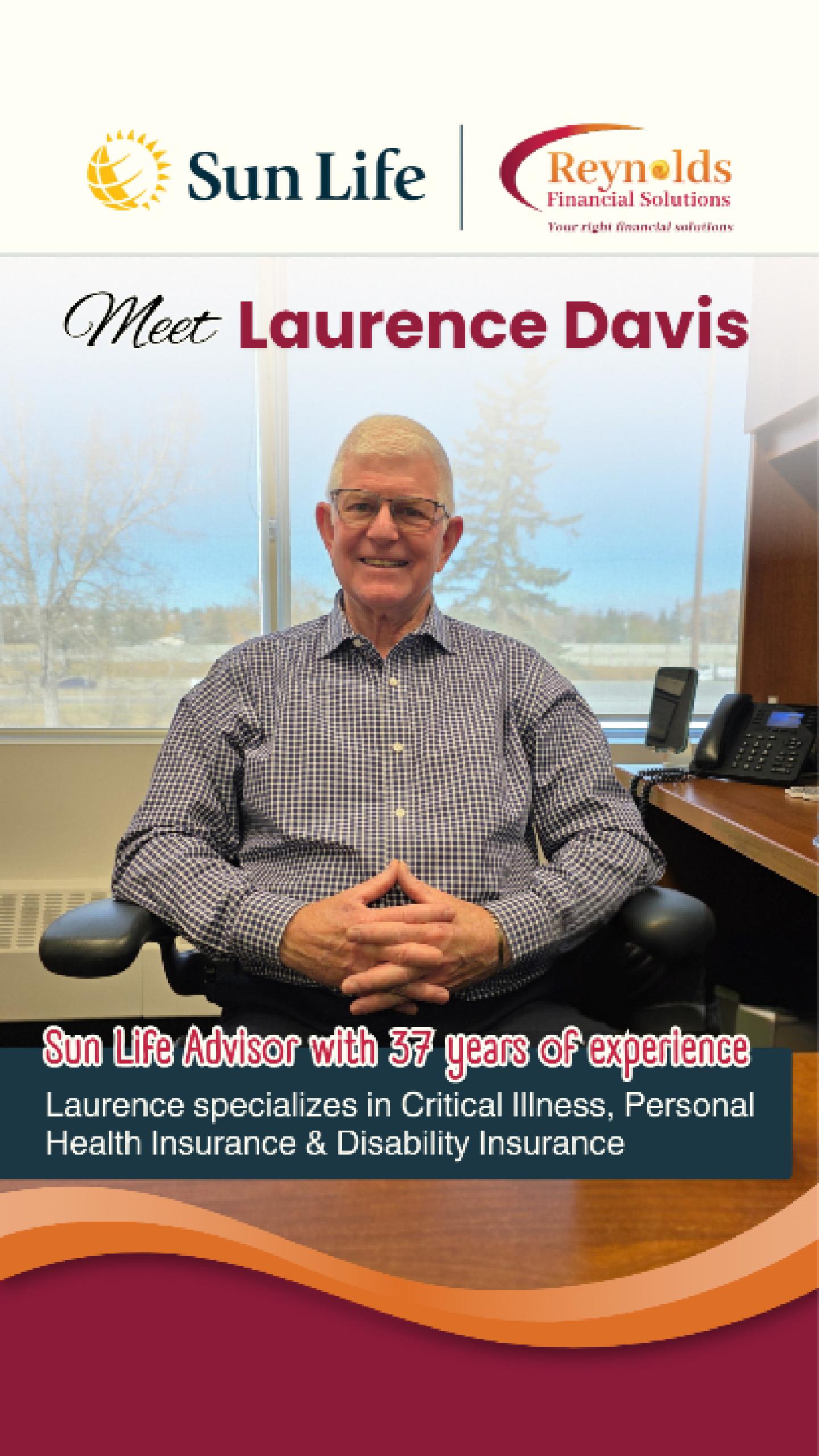 With more than 37 years in the insurance industry, Laurence Davis brings depth, dedication, and a steady hand to helping clients feel prepared and protected for the future.